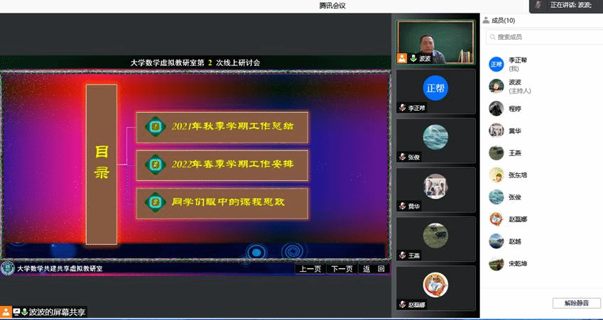 继我院大学数学教学团队于2021年7月联合新疆农业大学、重庆交通大学等高校大学数学教学团队组建了“大学数学共建共享虚拟教研室”以来,虚拟教研室的各项工作运行良好。2021年9月虚拟教研室成功召开首次线上教学研讨会,2022年3月4日晚,召开了第2次线上教学研讨会,虚拟教研室主要成员和相关教师参加了会议。