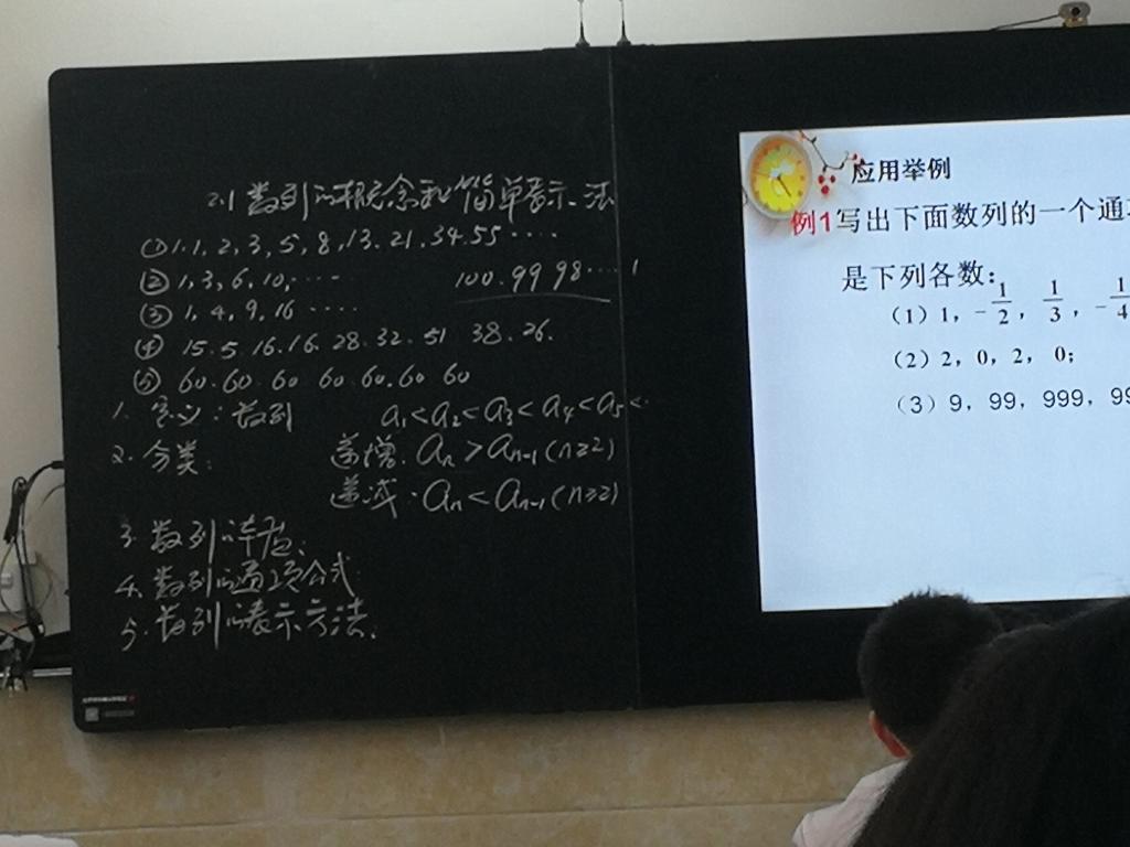 首先,唐老师带领同学们温习了函数的概念和表示方法,由此引入到新课的内容。紧接着,唐老师通过举例给出了数列的定义和分类,以及递增递减数列的数学语言表示。本节课的重点应该在于数列通项公式的求解。为了让同学们更好地掌握这一知识,唐老师借助具体的问题情境引导同学有逻辑地思考、探索所给数列的通项。然后,唐老师经过一系列的实例总结出“并非所有数列都可以写出通项公式”“数列的通项公式并非只有一个”。最后,唐老师概括总结了数列与函数的关系,这样同学们就能更好地根据数列的通项公式来研究其性质。