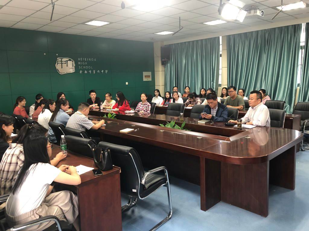 伴随着凉爽的秋风,华中师大赴合肥市第六中学进行教育实习的各位成员已经在这里度过了近一个月的时间。实习工作也进入了佳境,各方面工作都有条不紊的进行着。2018年10月9日下午4:00,实习队成员于7楼会议室开展第一次总结交流活动,高一年级部主任蔡胜国、副主任李刚参与了本次活动并对第一阶段的实习工作进行了总结点评。