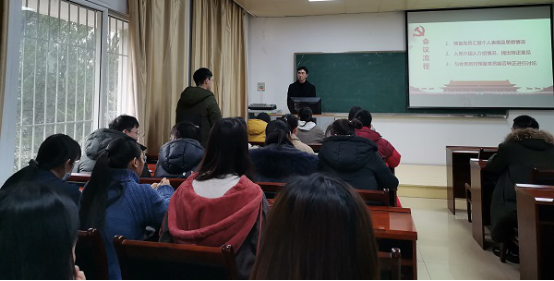 (通讯员陈婷)根据党支部发展党员工作计划,经征求党员和群众意见、支委会审查同意,数学与统计学学院2017级本科生第三党支部于2020年12月14日在六号楼二楼报告厅召开支部大会,讨论表决关于将陈婷等12名预备党员转为正式党员的事宜。本次会议参会正式党员4名,预备党员37名。同时大会邀请到2017级本科生第一党支部书记、2017级本科生辅导员王奥林同志与会指导。此次会议由第三党支部书记胡一心同志主持召开。