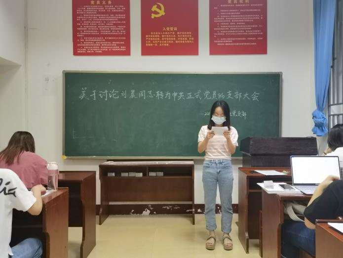会议第一项,由刘晨等21名预备党员同志依次宣读《转正申请书》,向党组织汇报自己在预备期的思想动态、学习、生活、工作情况,明确自己今后的努力方向,表达了如期转为正式党员的强烈愿望和为之奋斗的决心。会议第二项,入党介绍人介绍情况,入党介绍人分别从思想、学习、生活等方面对刘晨等21名同志进行评价,指出其优缺点,提出转正意见。会议第三项,与会党员对预备党员能否转正进行讨论。会议第四项,支部进行无记名投票。会议第五项,宣布投票结果与大会决议,新转正同志对大会决议进行表态。