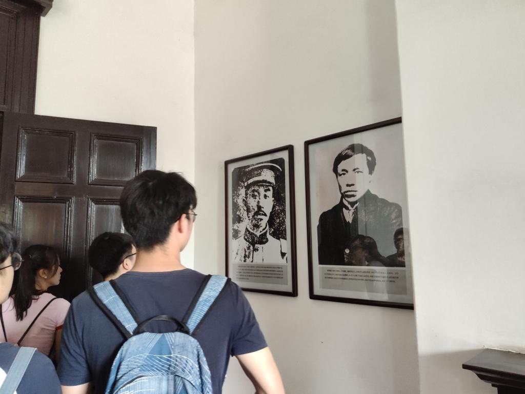 辛亥革命武昌起义纪念馆,是依托于中华民国军政府鄂军都督府旧址而建立的纪念性博物馆,因为该旧址红砖红瓦的外观,亦有“红楼”的别名。红楼前建有碧樟广场和花坛喷泉,并竖有孙中山先生的铜像,第五小组成员举着党旗在铜像前合照后,便进入了纪念馆内部进行了正式的参观。