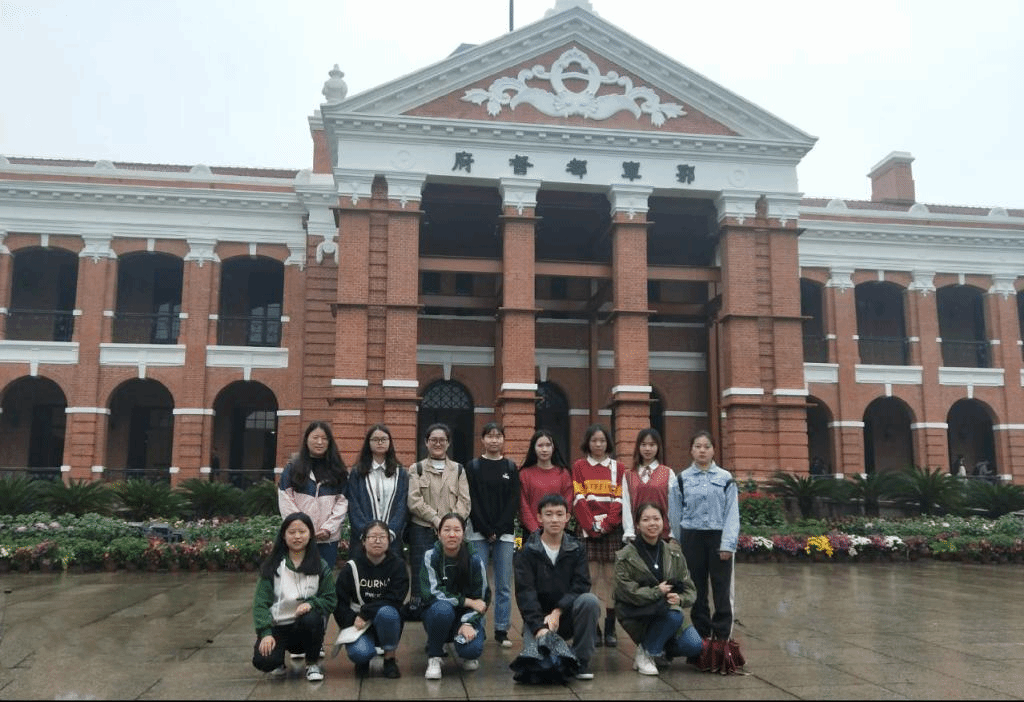 辛亥革命武昌起义纪念馆建立在湖北军政府的旧址上,原为鄂军都督府,是鄂军都督黎元洪的办公府邸,现在经过复原和修葺,湖北军政府遗址也一并对外开放,名为《鄂军都督府旧址复原陈列》,与《辛亥革命武昌起义史迹陈列》一起,构成了辛亥革命武昌起义纪念馆,因主体建筑为红砖砌墙、红瓦覆顶的红色两层楼房,故又称“红楼”,第四小组成员在鄂军都督府前合照后,便进入了红楼内部参观。