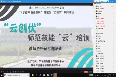 (通讯员 张燕娟)4月11日上午,数学与统计学学院“云创优”师范技能“云”培训活动第三期——“教师资格证专题培训”顺利开展,曾多次作为教师资格证面试评委的数统学院李娜老师担任此次培训主讲人。