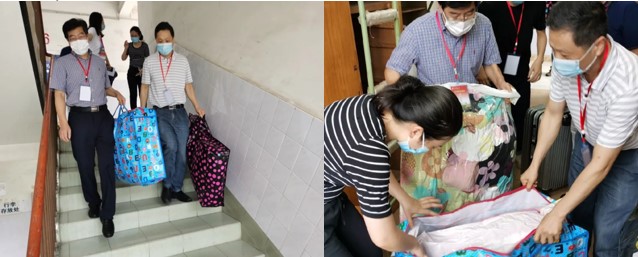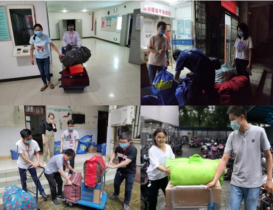 一对一教师志愿者深入学生宿舍协助同学们完成行李收拾、打包、搬运、寄送工作。