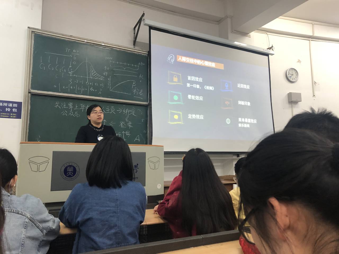 主题教育伊始,李慧老师首先抛出“外出娱乐休闲,你会找谁做伴?”、“被困孤岛,你希望谁在你身边?”等数个问题,让同学们对自己的社会支持系统做一个测试,最终计算回答这些问题所想到的人数,得出结论并以此判断自己的社会支持系统是否完善。在完成测试之后,李老师介绍了几种常见的人际交往中的心理效应:首因效应、近因效应、晕轮效应、刻板印象等效应,同时谈到了健康的人际关系的特点,指出彼此尊重和接纳、感觉安全、信任对方、共同付出等是健康的人际关系中重要的几个特点。