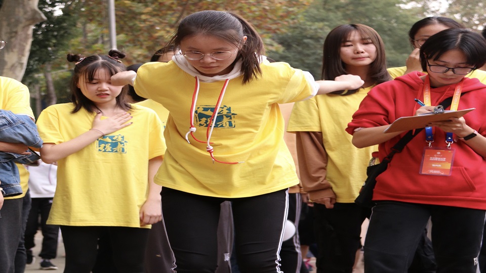 立定跳远比赛时,由于各种限制因素,选手犯规的可能性较大。数统学院男女混合立定跳远项目负责人周海倩在赛场旁不断提醒选手严格遵守比赛规则,体现了数统学院尊重比赛、尊重规则、尊重对手的体育竞技精神。赛场旁的台阶上站满了加油呐喊的学生,比赛现场战况激烈、热血沸腾。