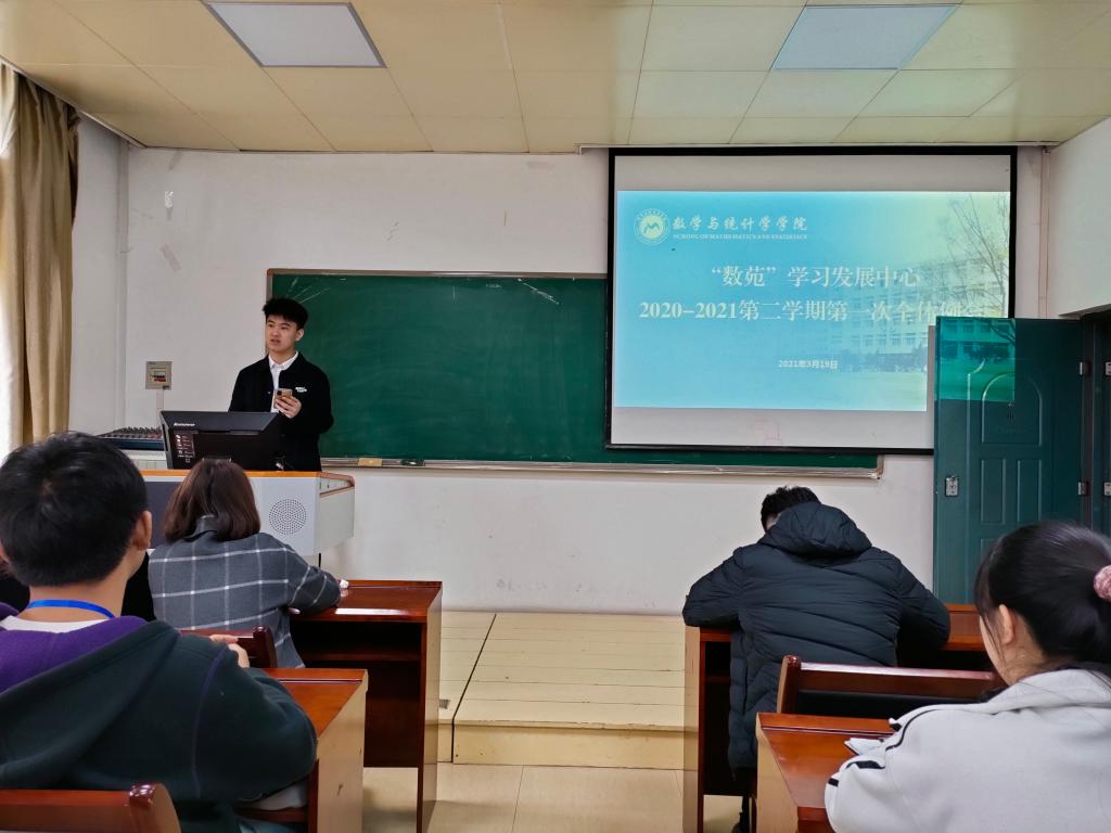 (通讯员 龙佳琪)3月19日下午,数学与统计学学院(以下简称“数统学院”)“数苑”学习发展中心2021年度第一次全体例会暨宣传技能培训于六号楼二楼报告厅顺利举行。本次活动由“数苑”学习发展中心主任田超主持,数统学院2017级辅导员王奥林、王铭歆和2019级辅导员张子规以及全体中心成员参加本次例会。