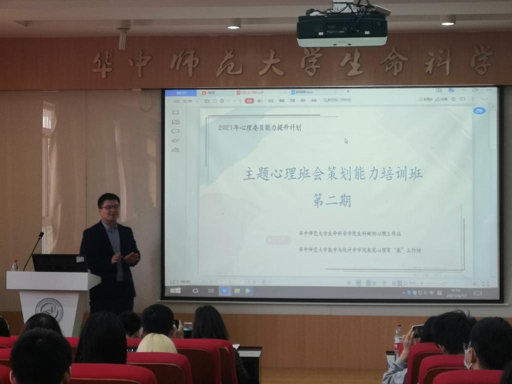 (通讯员:吴瑛)为丰富数学与统计学学院心理育人的形式,聚焦立德树人目标,充分发挥学生主体在心理育人过程中的作用,提升学院心理健康教育水平及危机干预能力,4月17日上午,华中师范大学数苑心理有“数”工作坊与生科树洞心理工作站联合开展的“主题心理班会策划与组织”第二期专题培训结业讲座在5301顺利举行,由全国高校心理委员研究协作组理事、中南财经政法大学心理中心专职教师余金聪担任主讲人。出席本次讲座的嘉宾有数学与统计学学院2020级辅导员张路阳和生命科学学院2018级辅导员余璇。来自十多个学院的共64名心理委员和班长参加讲座。