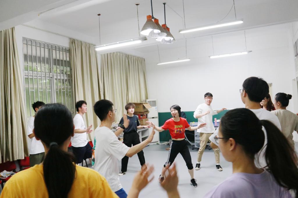 活动伊始,大家通过“乌鸦破冰”的小游戏拉近了彼此间的距离。随后,热身环节“舞动沙蛋”登场。大家在五月天《私奔到月球》的节奏中进行一拿二放、一二三四等多种舞动变式中自由摆动,与此同时,也充分调动起大家的积极性。接着,热舞逐渐升级,伴随着五月天《派对动物》的音乐,“奥特曼式”、“同手同脚式”等等舞蹈动作花样百出,为接下来的环节做了充分的准备。