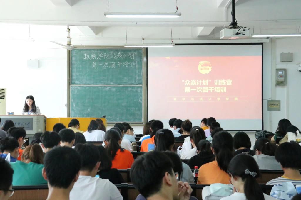 在傅子芸清点完应到场人员的出勤情况后,彭雨萌向大家介绍了团干培训的时间安排与具体流程,并表示:团干培训是助理营员们提升自己、锻炼技能的好机会,希望每个人都能认真听讲,顺利通过团干考核,正式成为数统学院团委学生会的一员。