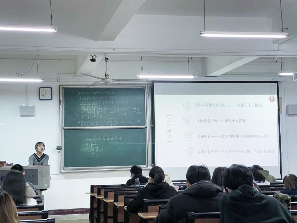 培训伊始,韩茜回顾了普通话的定义及普通话水平等级划分,她强调一名数学老师的普通话等级至少达到要二级乙等,同学们需要做到发音基本准确,语调基本自然,表达比较流畅。随后,韩茜介绍了普通话考试的考前准备和考试流程,其中考前准备分为统一报名、打印准考证、携带证件三个环节;考试流程依次为签到、检录、备测、测试。她以自己参加普通话培训的经历为例,告诉同学们普通话考试的细节,同学们受益匪浅。