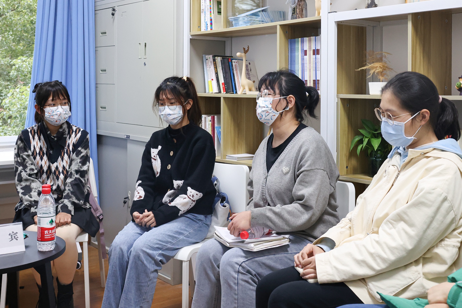 在大家彼此熟悉之后,张雅杰邀请在座的同学们轮流谈谈自己在学业上遇到的让自己感受到压力很大的困难。每一位同学分享结束之后,她都会让其他同学来分别讲述自己面对相同的事情时的内心感受、处理方式和排解方法等。在张雅杰的带领下,同学们渐渐敞开心扉,融入了本次的团体活动中。在之后的聊天过程里,每一个人不仅积极地分享自己在学业上面对压力的经历以及处理学业压力的经验,而且真诚地为被压力所困的同学提供建议。