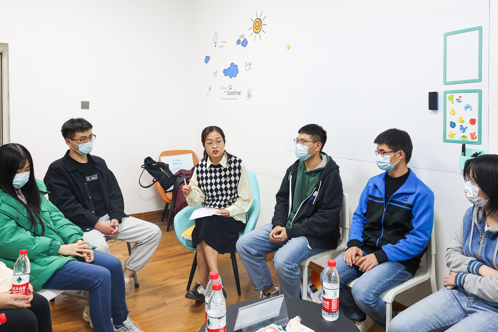 活动伊始,张雅杰简要地向同学们介绍了自己的身份以及本次半结构式同质团体的含义,希望大家能够在本次的团体活动中积极地分享,在交流中释放自己的学业压力。接下来,她邀请同学们依次做一个简短的自我介绍,并且分享自己对本次团体活动的期待。张雅杰告诉大家,做自我介绍的目的是想要让互不相熟的同学对彼此有一个最基本的了解,拉进同学们之间的距离,便于后续交流活动的进行。同时,她表示,同学们在做自我介绍的过程中,可以使用化名,并不需要把自己的个人信息告诉其他同学,希望这样能够让大家以一个更加轻松的心态来进行分享与倾诉。