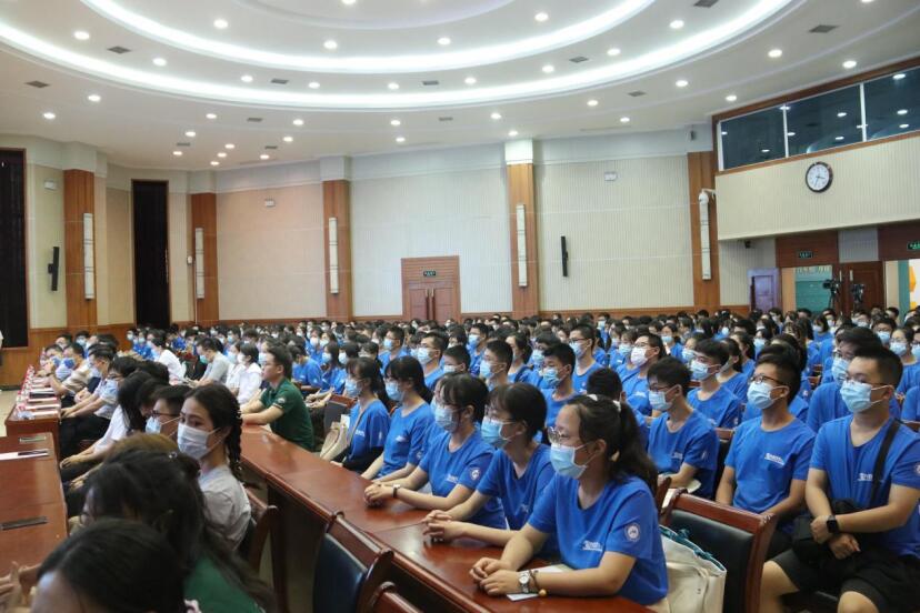 随后,副院长郑高峰从几何知识引入,将抽象的数学问题具体生动化,介绍了大学数学内容的基本框架与学习的基本方法。他强调数学学习中的分寸感和灵感的结合,希望同学们不断磨擦出好点子,新点子,奇点子。他鼓励同学们肯下功夫,多多钻研,不辜负大学的美好时光。
