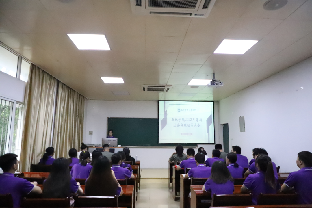 为深入贯彻落实习近平总书记关于青年工作的重要思想,引导和帮助广大青年学生上好与现实相结合的“大思政课”,同时为保证数学与统计学学院(以下简称“数统学院”)2022年暑期社会实践活动的有序进行,7月5日下午,数统学院2022年暑期社会实践动员大会在六号楼二楼报告厅举行。数统学院党委副书记田俊、团委书记武靖、团委副书记龙星宇及2022年暑期社会实践队指导老师李慧、王奥林、林诗芸和队长等出席本次动员大会。本次活动由数统学院团委副书记向进主持。