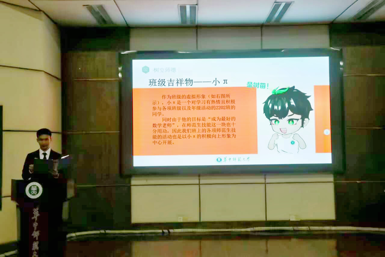 在现场答辩环节中,各集体代表围绕班级文化建设、特色亮点、师德师风培育等方面,阐述班级建设成果及优势。2202班负责人指出,通过将班级虚拟形象“小π”融入学风建设、师德师风学习等日常工作,班级成员的参与积极性有所提高,有效营造出团结、奋进的班级氛围。