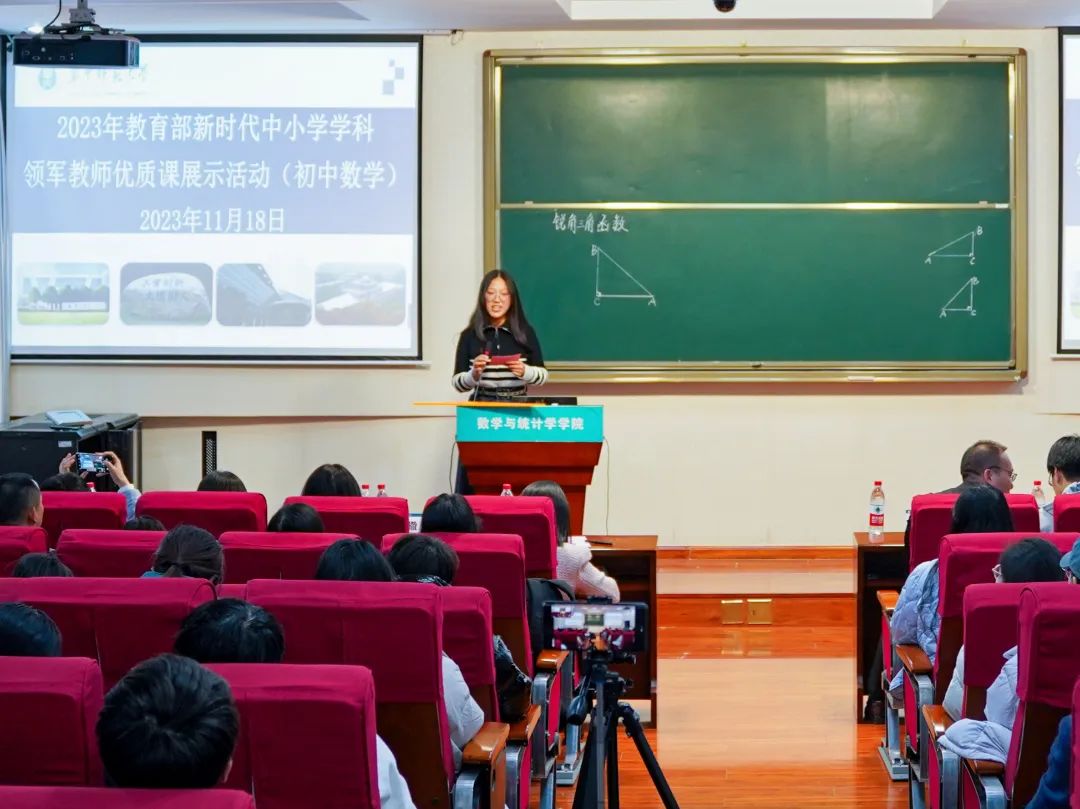 (通讯员 戴婉婷)为提升师范生专业能力素养,搭建师范生与国家级一线名师沟通交流的桥梁,11月18日晚数学与统计学学院(以下简称“数统学院”)于六号楼6401报告厅开展“薪火相传 共承华章”国培学科领军教师优质课展示活动。此次展示活动特邀湖南师大附中博才学士中学课程与教学处主任黄乔玉,云南省优课名师、春城计划拔尖人才撒睿担任主讲人,数统学院党委副书记杨可军、“数苑”学习发展中心指导老师龙星宇、蔡子尧出席活动现场。