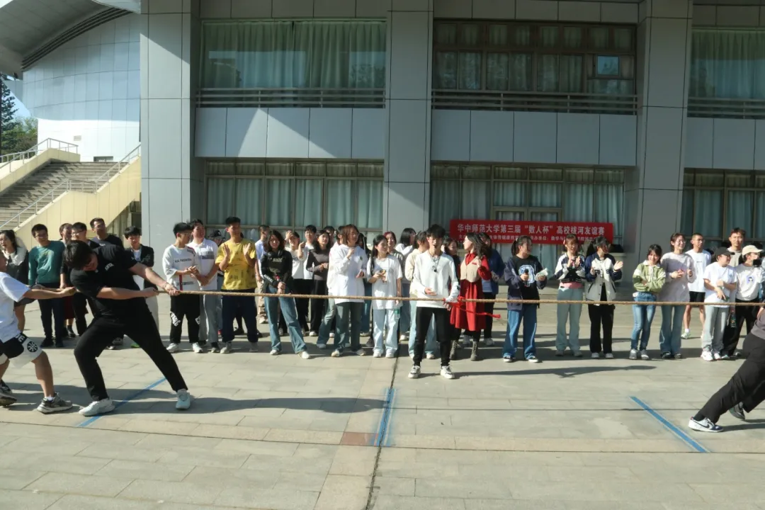 (通讯员 程欣)为充分发挥体育育人功能,加强高校之间的交流互动,促进学生全面发展、增强综合素质、培养团队精神与集体荣誉感,3月29日下午,华中师范大学大学生体育(健康)教育中心、数学与统计学学院(以下简称“数统学院”)团委学生会于佑铭体育馆主馆旁平台举办第三届“数人杯”高校拔河友谊赛,来自海军工程大学、数统学院的120余名学子参与本次活动。
