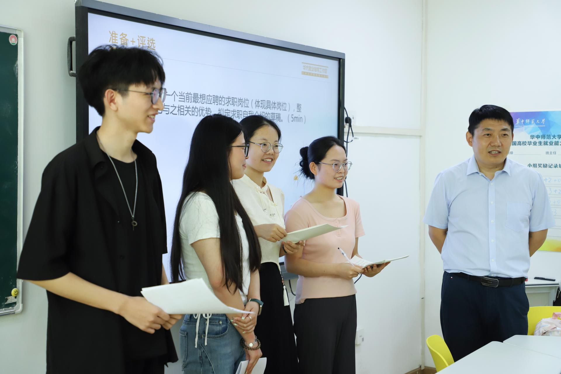 个体面试板块,丁玉斌组织各组搜寻招聘简章及信息,并进行模拟面试。丁玉斌对参与模拟面试学员的情况逐一进行点评,在点评中强调,在面试过程中要快速、准确体现自己的就职优势和职位胜任力。结构化面试板块,丁玉斌首先介绍了结构化面试的常见流程和提升方法。结合武昌区教育局结构化面试实例,各组选派一名学员完成结构化面试模拟。丁玉斌从问题类别入手,详细介绍了结构化面试中会出现的问题类别,并就各类问题的主要特点进行说明。以情景类问题为例,丁玉斌以提出问题、分析问题、解决问题,详细介绍了应答思路和技巧。