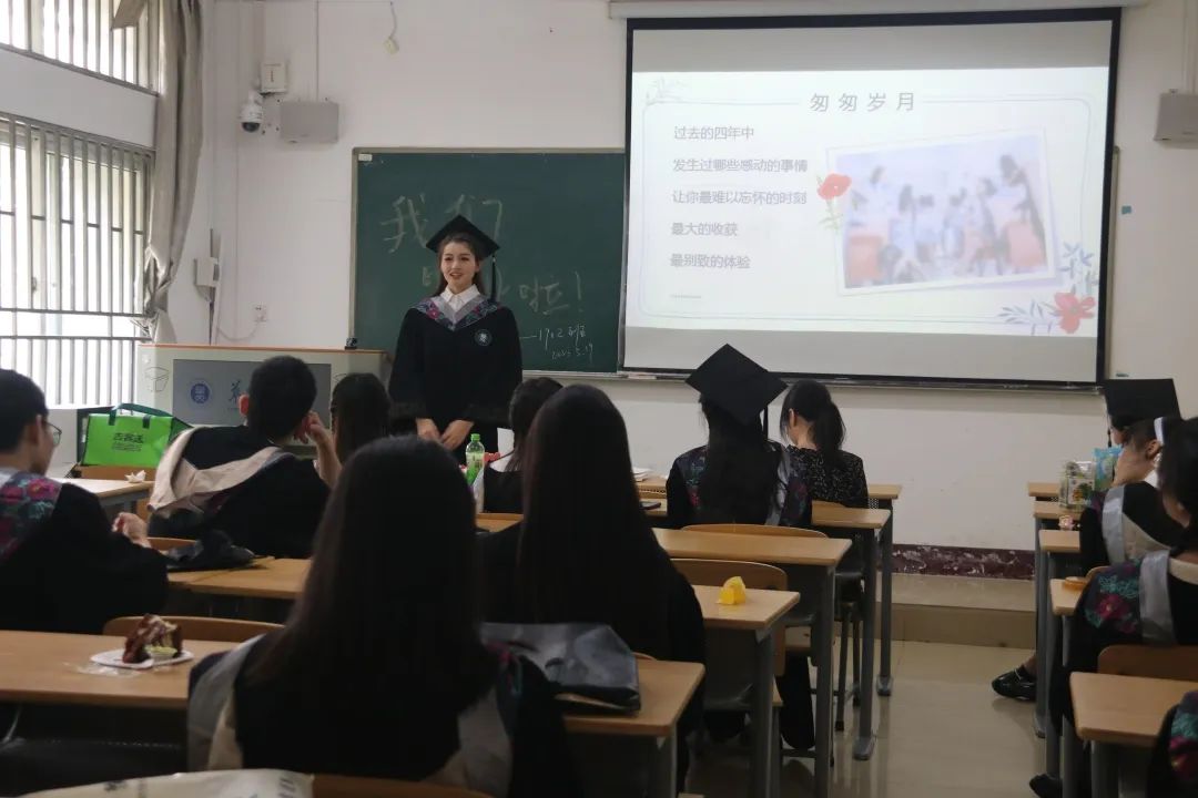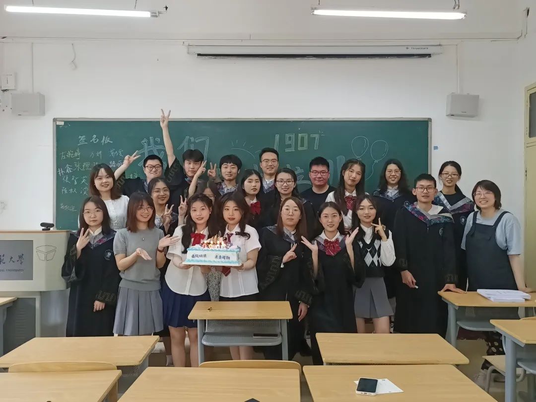 5月17日上午,1907班“奔赴山海,前程似锦”毕业班会在6206举行,通过最后一次的班级活动,共同回忆青春四年,展望未来,为新篇章的开启许下美好祝愿。本次班会分为大学生活点滴回忆,班主任美好未来展望,班级成员祝福寄语与蛋糕分享三个部分。