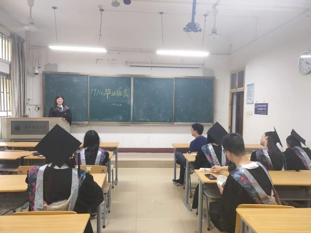 5月18日,1910班在6210教室顺利举行毕业班会,班长王燕玲主持本次班会。班会上,大家一起观看班级视频,和班主任王华老师一同回忆了班级的种种活动经历,共同获得的荣誉。在“为过去或未来寄语”环节,同学们在明信片上留下了对于自己大学生活的记忆、对于自己未来学习或工作生活的期待;班会的最后,王老师寄语,向同学们表示祝贺,华师永远是同学们的家,有需要和帮助可以随时联系老师。