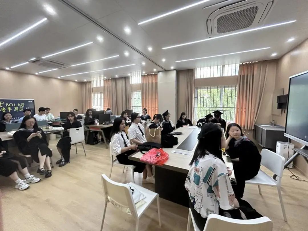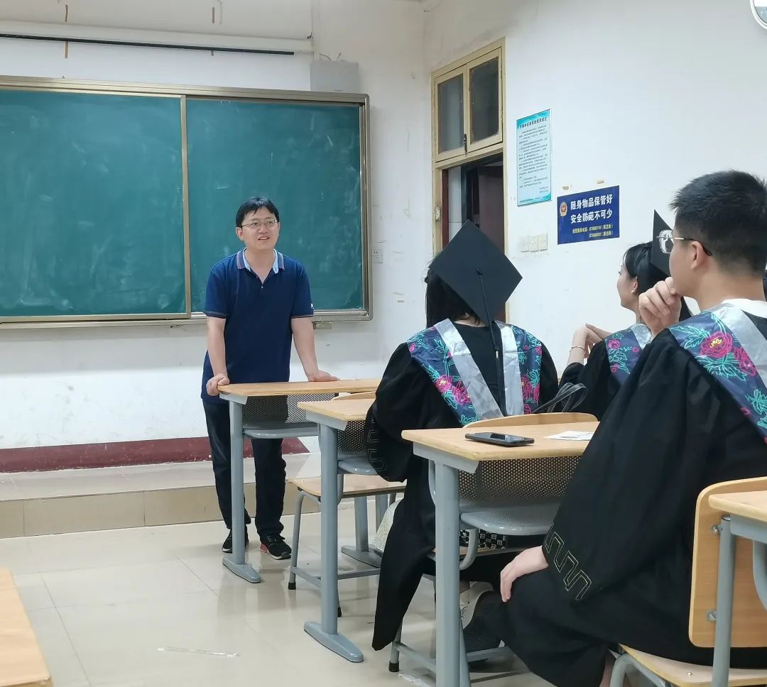5月17日上午,1904班在六号楼举办毕业班会,1904班全体成员参与。全班同学身着学士服同班主任黄超老师在六号楼正门前拍摄班级集体照,黄老师向同学们致以毕业祝福。还有许多同学单独与班主任留影,微笑映射在脸上,欢乐洋溢于师生谈吐间。
