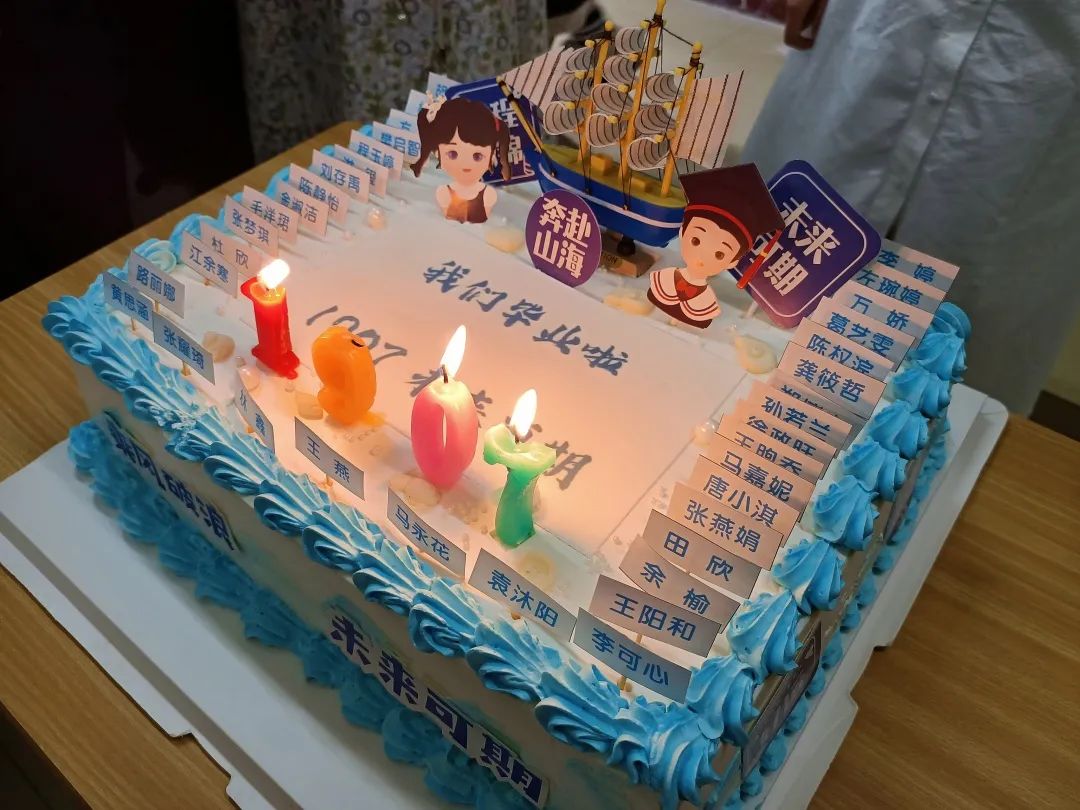 班会上,大家一起分享大学生活和共同经历的班级活动,回忆匆匆而逝的青春中值得反复回味的点点滴滴。班主任王燕老师寄希望于班级所有成员,祝福大家前程似锦,还特别强调保持学习习惯的重要性,嘱咐同学们在未来无论是继续求学还是走上工作岗位都要坚持学习,努力地提升自己。活动最后,班级成员互写祝福寄语,共享毕业蛋糕,希望1907班的小伙伴们且向风而行,尽情书写新时代青年的理想抱负。