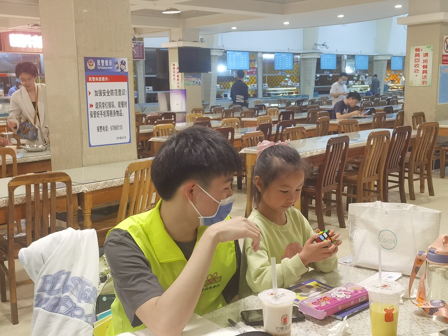 华大数统 (通讯员 罗显涛) 3月17日晚上,华中师范大学数学与统计学学院青年志愿者协会(以下简称“数院青协”)组织五名志愿者前往学子食堂顺利开展了食堂职工子女辅导志愿活动。本次活动旨在为小朋友们答疑解惑,督促小朋友完成作业,培养他们良好的学习习惯,并以此来感激辛勤付出的食堂工作人员。