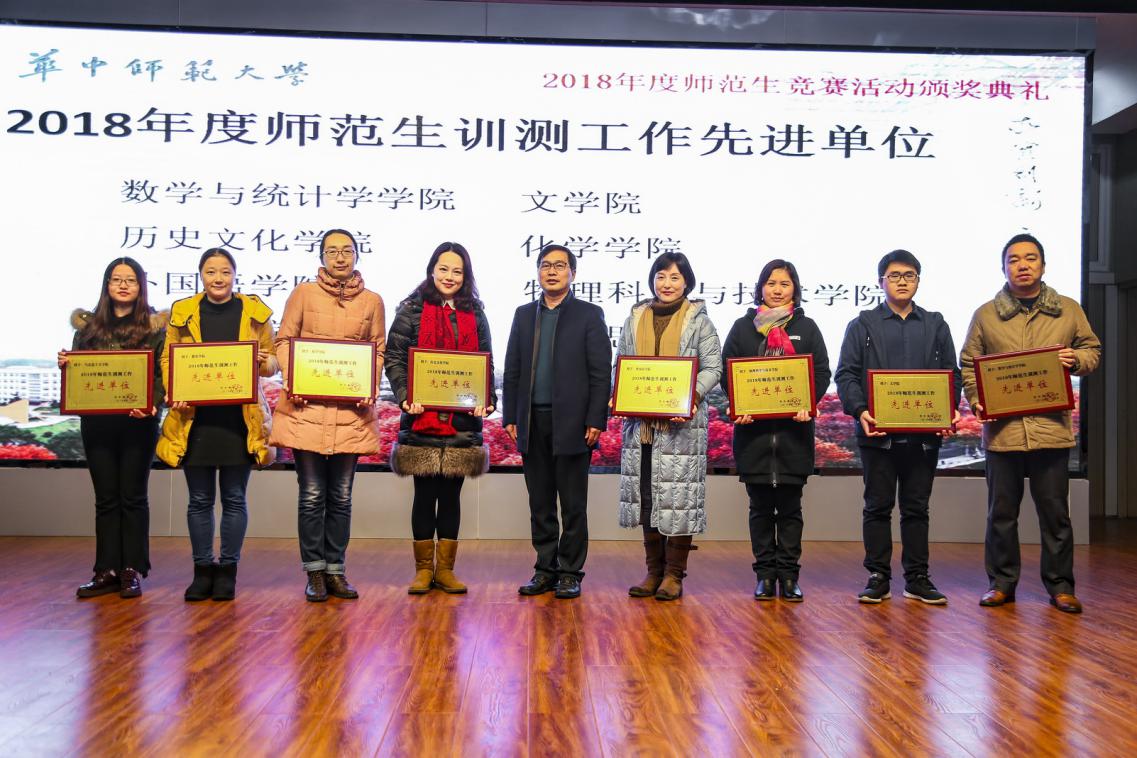 12月7日,华中师范大学“2018年度师范生训测工作先进单位”颁奖典礼在大学生活动中心五楼演播厅举行。我院以综合得分第一获得“2018年度师范生训测工作先进单位”荣誉称号。我院2016级卓越教师班和1701班均获“最佳师范生集体”称号,包括我院两个班级在内,全校共有8个班级获此称号。