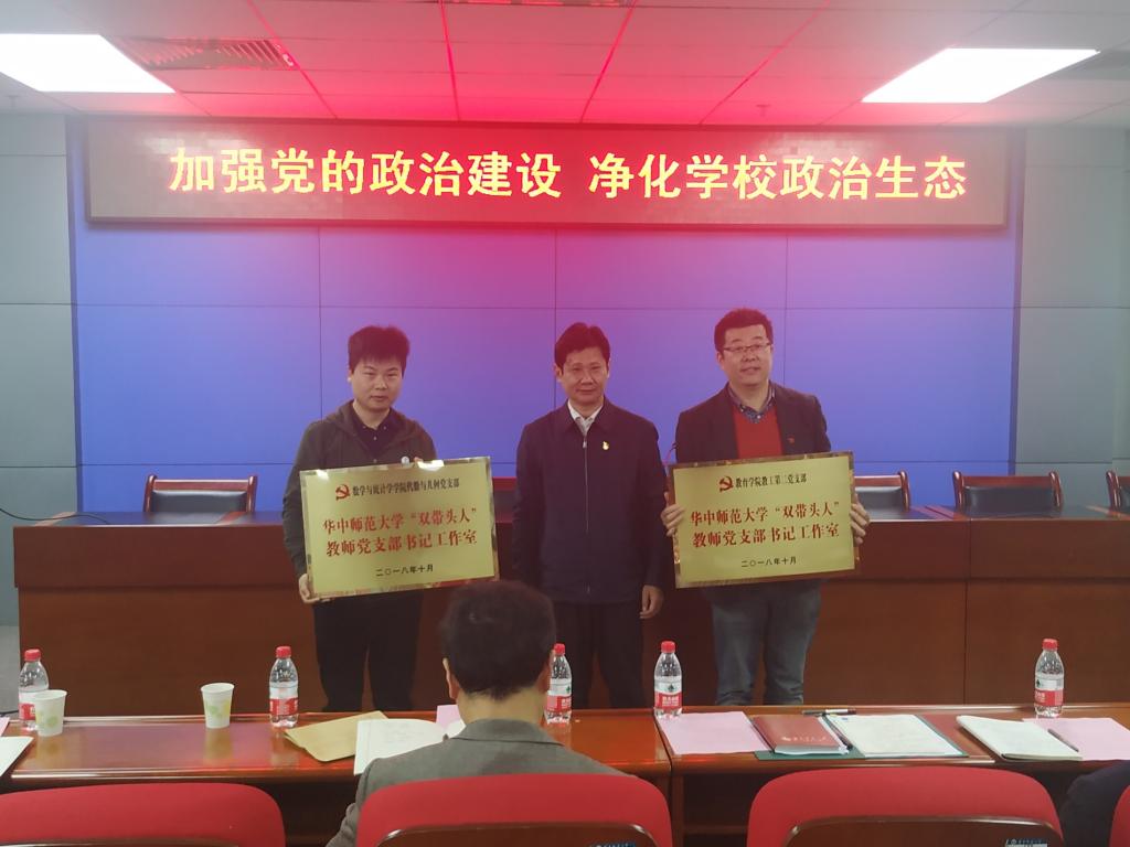 报告会前举行了我校首批“双带头人”教师党支部书记工作室授牌仪式,赵凌云为数学与统计学学院代数与几何党支部书记工作室和教育学院教工第二党支部书记工作室授牌。
