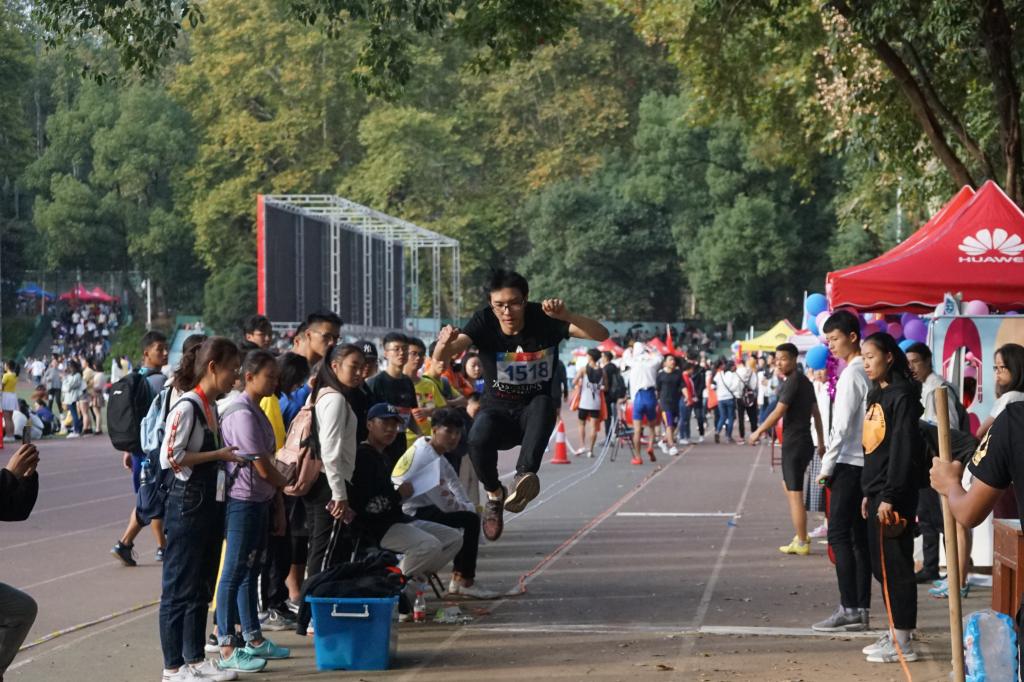 开幕式团体广播操表演中,同学们统一身着迷彩服,佩戴白手套。跟随着口令做出整齐划一的动作,充分展示出华师学子的朝气与活力。实心球比赛中,男女选手交替抛球,无论男女,到了赛场上,姿势都一样的标准、干净、利落。预备动作马步扎实,手臂力量运用合理,抛球弧线科学漂亮。混合毽球比赛中,选手们集中注意力于毽球上,眼动脚动,力求踢得又快又稳,最终以817个的好成绩夺得了团体第二名。