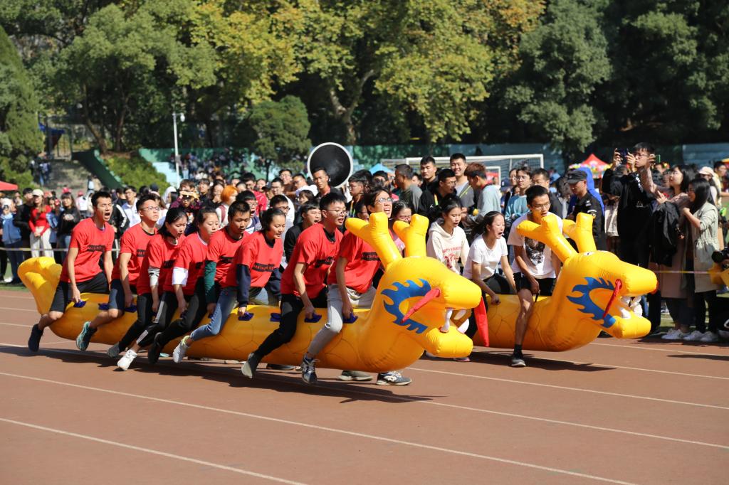 说到团结,少不了数统引以为傲的团体项目。赛场上的几分钟,凝聚了同学们每晚在寒风黑夜里的不断突破。操场上进行平板支撑训练是“仰卧起坐”运动员,扎马步的同学是“陆地龙舟”的参赛选手,还有不远处一次又一次计时寻求突破的“男女混合接力跳绳”等等。他们互相帮助彼此激励,一次又一次刷新着记录,他们团结一致克服困难,为运动会可能的突发情况做好准备。在一些新增的趣味项目中,负责人努力找寻各种道具,为的就是运动员在赛场上能够更好的发挥。这些坚持,带来的不仅是技巧能力的提升,更是一份兵来将挡水来土掩的自信。也正是这样,赛场上的运动员们才能洋溢出明亮的笑容,在运动会中发光发热。