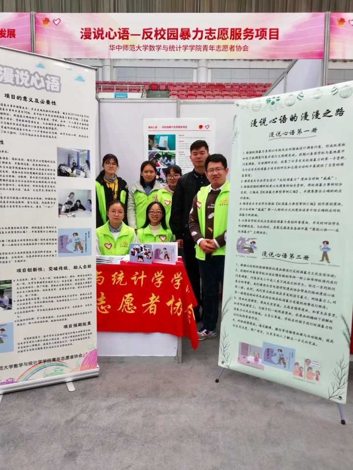 2018年12月5日上午,第四届中国青年志愿服务项目大赛暨2018年志愿服务交流会召开,组委会秘书处对第四届中国青年志愿服务项目大赛全国赛获奖名单进行了公示。其中,华中师范大学数学与统计学学院青年志愿者协会的“漫说心语――反校园暴力”志愿服务项目从全国一千余项项目中脱颖而出,荣获本次大赛铜奖。这也是数统青协继2016年“听见你的声音――关爱听障儿童”志愿服务项目荣获第三届中国青年志愿服务项目大赛银奖后,再次获得国家级荣誉。志愿服务是一个持续的发展过程,优秀的项目需要团队支撑,那么青协是怎样取得了今天的成绩呢?他们平常的一周里又会发生什么样的故事呢?