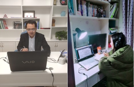 左为代晋军老师上直播课 右为学生参与《高等数学》直播课