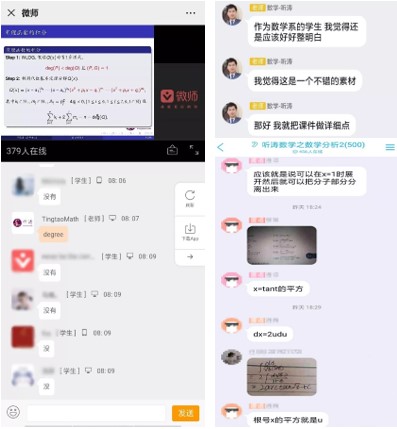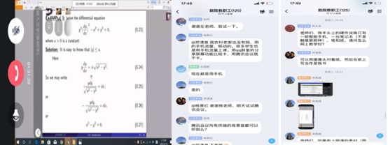 左为《数学分析2》线上直播课 右为邓勤涛老师与学生线上互动