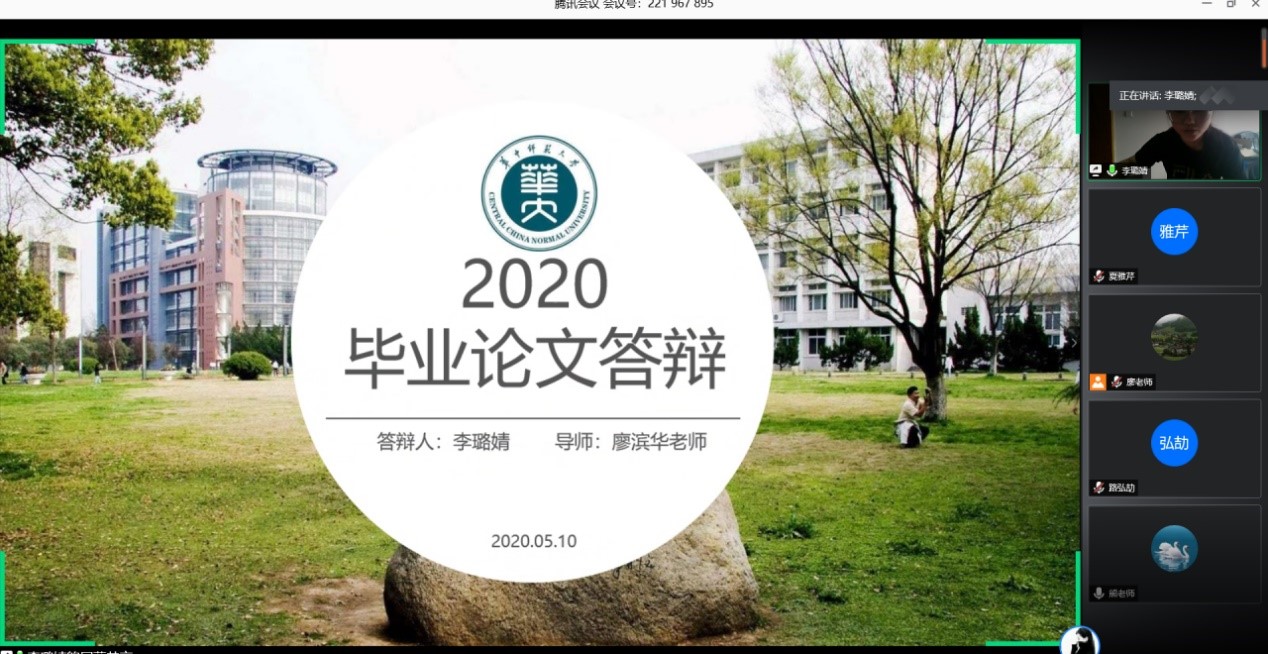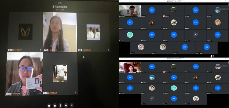 吴贞莉同学则认为,在疫情这个大背景下,学院采取线上答辩的形式是守护同学们生命安全的一种责任体现,她说:“这次线上答辩,我感受到了学院对于我们的关爱和支持。相比以前的现场答辩,这次网上答辩是一种完全不一样的经历,更让我们学会了成长,这是学校给我们的一份特别的毕业礼物。”