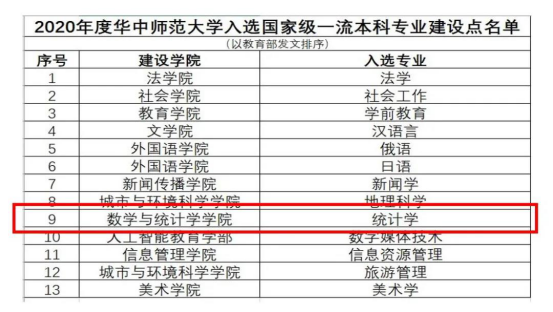 日前,教育部办公厅公布了2020年度国家级和省级一流本科专业建设“双万计划”建设点名单,我院统计学专业成功入选国家级一流本科专业建设点!这是我院继数学与应用数学专业之后第二个入选国家级一流本科专业建设点的专业。