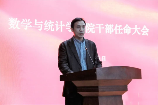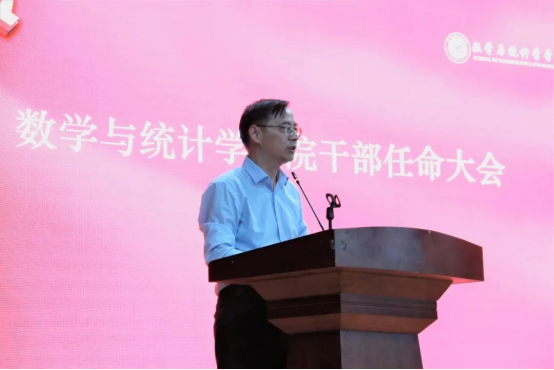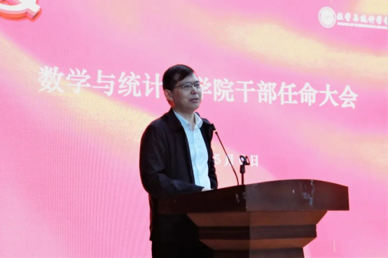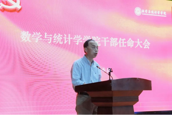 会上,校党委组织部部长郭方宣读了学校党委任免决定,刘成竹同志任数学与统计学学院党委书记,因工作调任,王中同志不再担任数学与统计学学院党委书记职务。