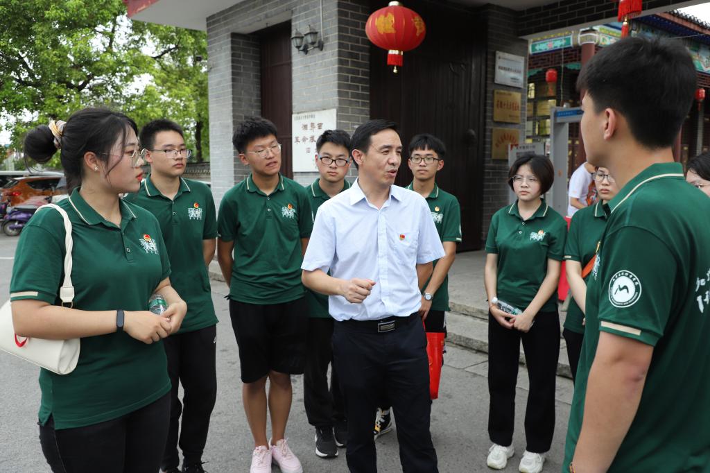下午,刘成竹一行带领学院教工和学生党支部书记前往瞿家湾镇,走访慰问在当地参加暑期社会实践的队员们,并在湘鄂西革命根据地旧址举行了华中师范大学数学与统计学学院暑期社会实践基地授牌仪式,实践队队长田超、副队长周海倩就实践队开展的党史学习实践、“希望家园”暑期托管、社情国情调研等情况进行了汇报。