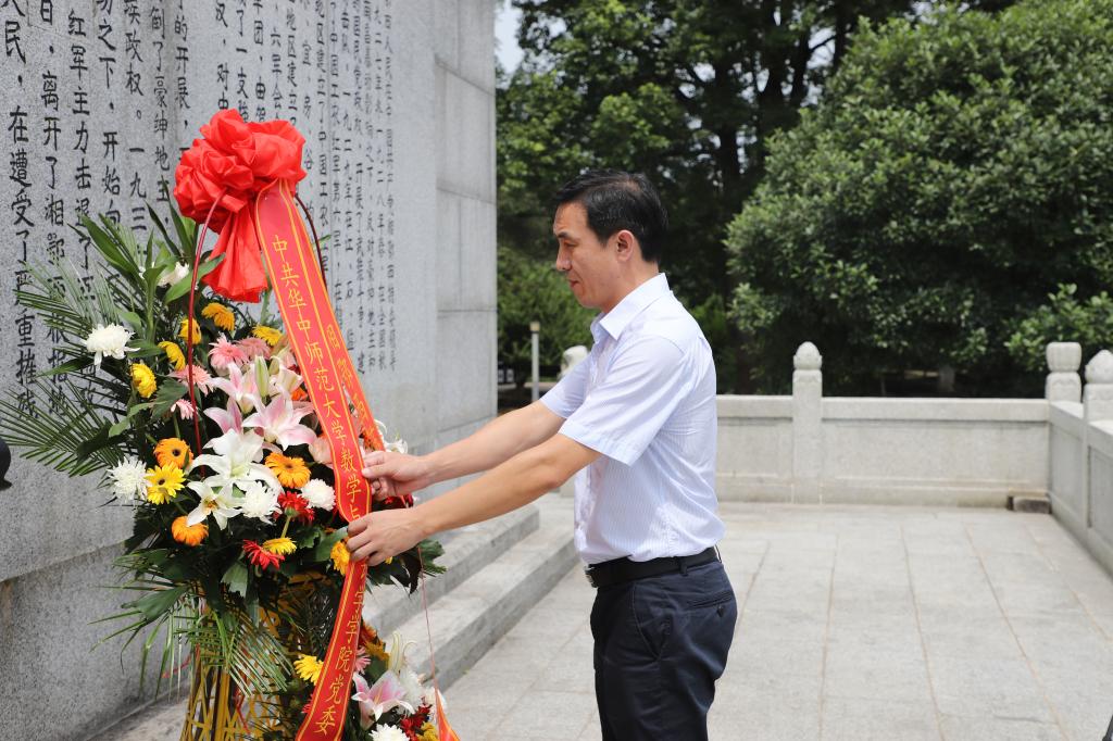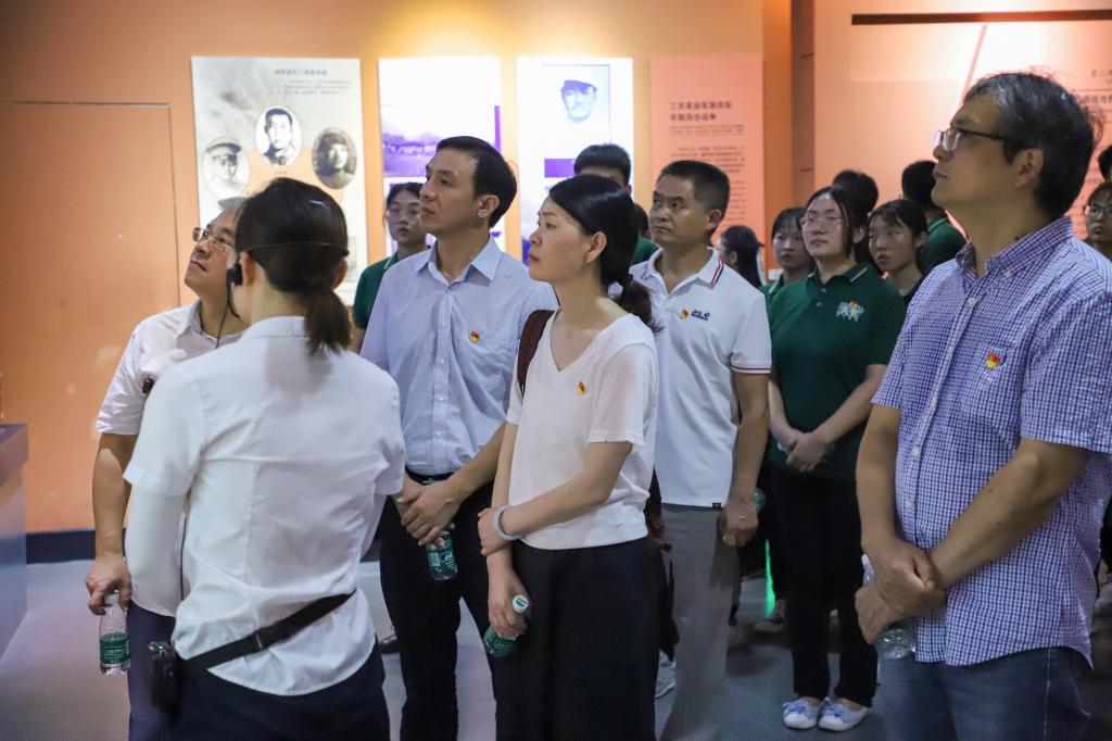 为深入学习贯彻习近平总书记“七一”重要讲话精神,以党史学习教育为抓手,加强和改进新时代学院思想政治教育工作,华中师范大学数学与统计学学院(以下简称:数统学院)党委书记刘成竹一行于7月16日前往湖北洪湖,曾经的湘鄂西苏区首府、红二方面军的摇篮、洪湖赤卫队的故乡,开展党史学习教育活动。数统学院部分教工和学生党支部书记以及“菁诚‘红梦之旅’暑期社会实践队”队员参加活动。