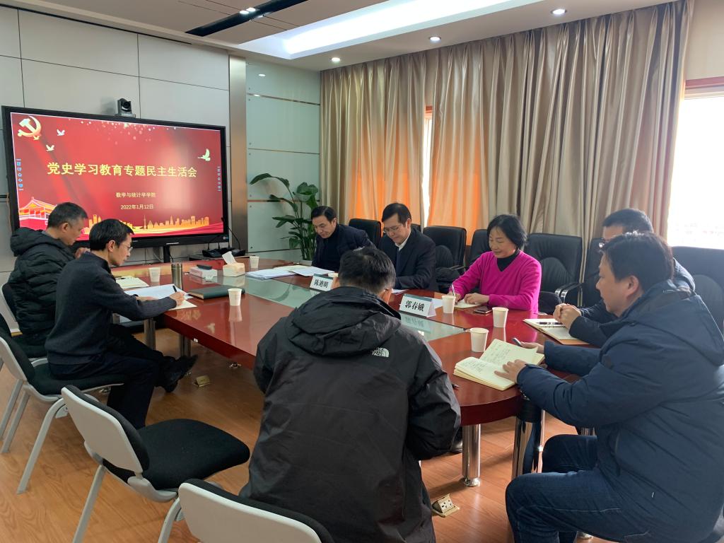 1月12日,数学与统计学学院召开了中层领导干部党史学习教育专题民主生活会,校党委副书记陈迪明和学校党史学习教育督导组成员校工会常务副主席郭春娥与会并作指导。