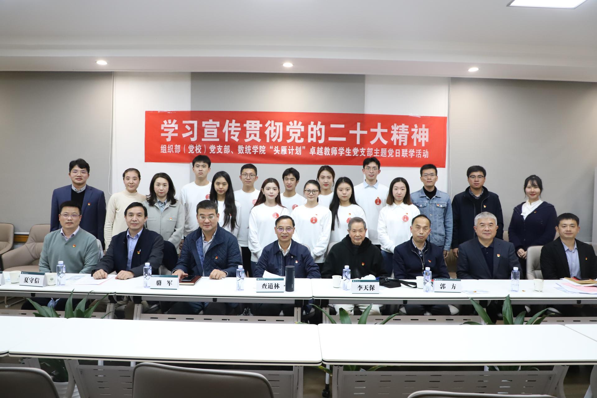 为深入学习宣传贯彻党的二十大精神,11月24日,组织部(党校)党支部、数统学院“头雁计划”卓越教师学生党支部主题党日联学活动在六号楼323会议室举行。校党委副书记查道林以普通党员身份参加活动。数统学院党委书记刘成竹、党委副书记田俊、“头雁计划”卓越教师学生党支部指导教师李书刚和部分学生入党积极分子代表列席活动。联学活动由“头雁计划”卓越教师学生党支部书记王奥林主持。