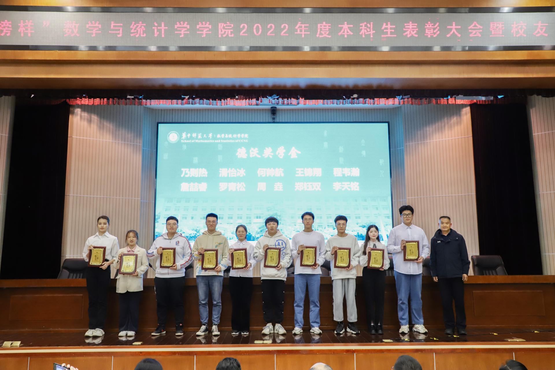 4月23日晚,华中师范大学数学与统计学学院2022年度本科生表彰大会暨校友奖学金颁奖典礼于科学会堂一楼报告厅举行。83级校友华中师范大学广东东莞校友会会长、高金富恒集团有限公司副总经理谢庆棠,湖北省生态工程职业技术学院雷小云,华中师范大学数学与统计学学院办公室主任张在武,84级校友武汉职业技术学院计算机技术与软件工程学院党委书记刘昌喜、华中师范大学附属第一附属中学舒清芳,94级校友华中师范大学第一附属中学李继林、数统学院副教授程婷,校党委学生工作部副部长杨军,校团委书记麻旎,校校友工作办公室副主任易吉林,数统学院党委书记刘成竹、副院长郑高峰,班主任代表蒋代军、范琼、陈双、丁来浩、阴小波出席本次会议。会议由学院党委副书记田俊主持。