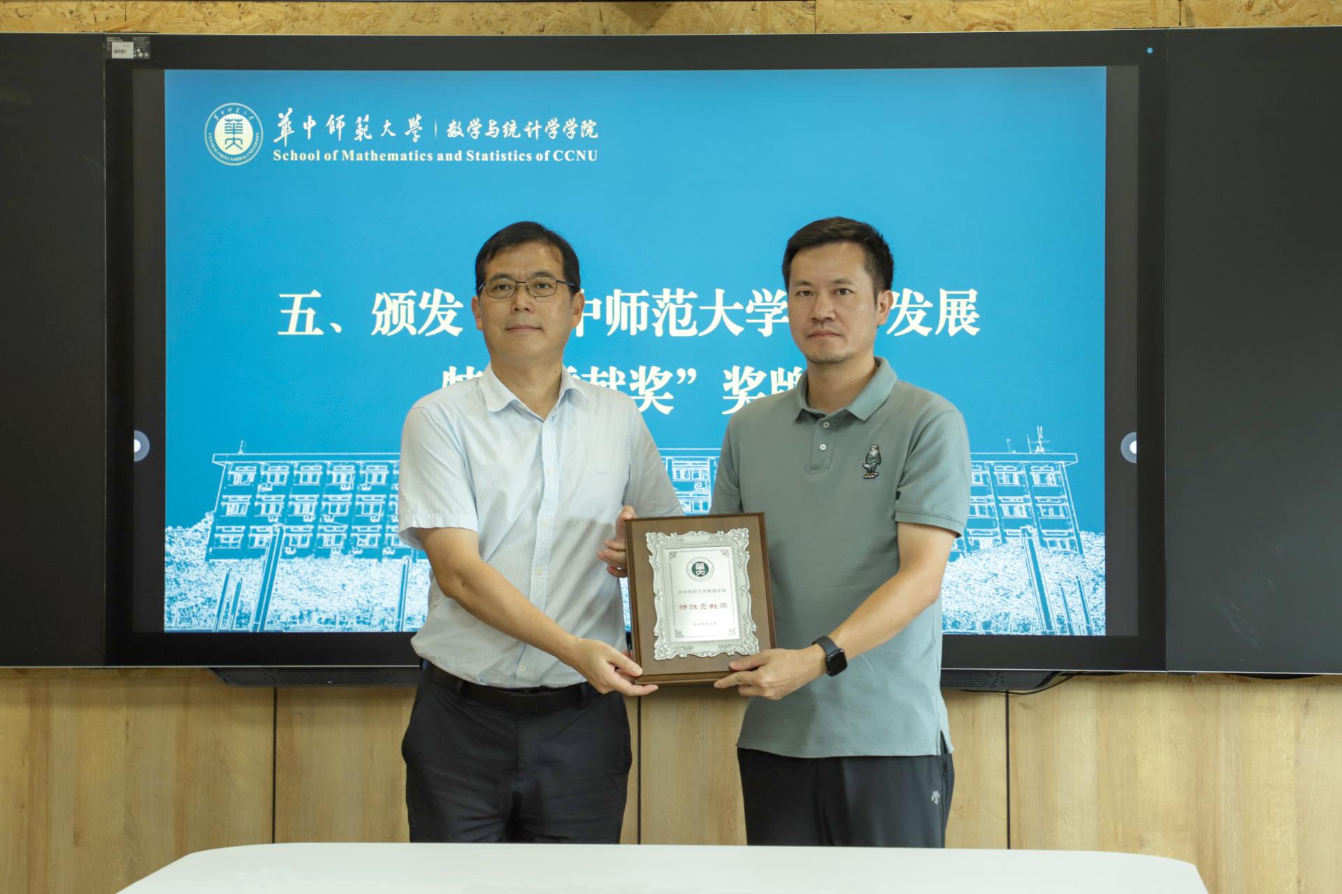 陈迪明为赵根颁发“学校教育发展特殊贡献奖”奖牌并作总结讲话。他代表学校对赵根校友的慷慨出资表示衷心感谢,充分肯定赵根校友的博爱善举以及高度的社会责任感。陈迪明介绍了近年来学校的发展变化以及数统学院的学科发展情况,希望在更广阔的领域实现学校与校友、企业的共同发展。并欢迎赵根校友在校庆时再返母校,共襄盛典。