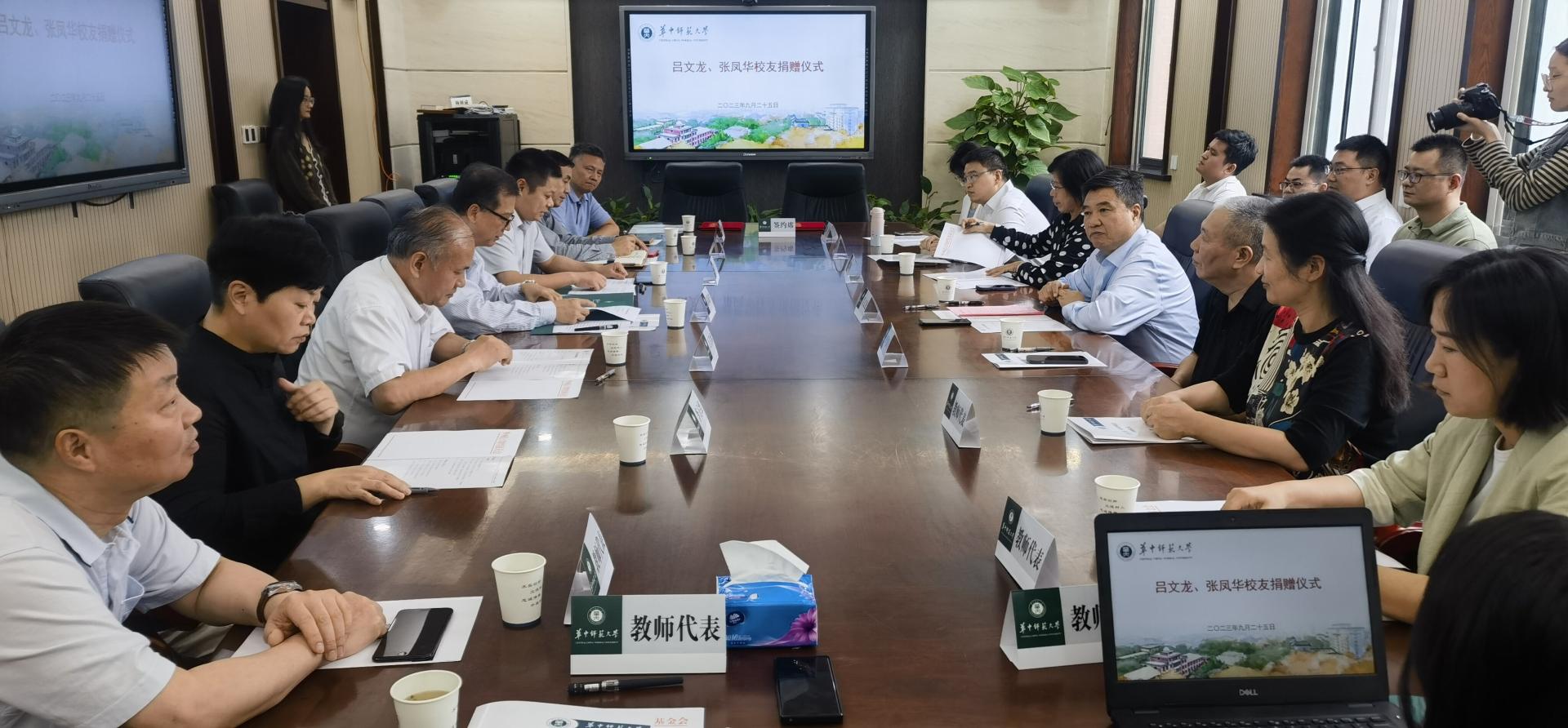 彭南生代表学校对吕文龙校友的慷慨出资表示衷心感谢,充分肯定吕文龙校友的善举。他表示,吕文龙多年来坚持绿色发展经营理念,他的社会情怀、教育担当和大爱精神值得全体华师人学习与借鉴。正值华师120周年校庆之际,吕文龙校友的善举对于学校发展具有重要意义。学校将充分使用善款、争取效能最大化,共同促进加强数学与统计学学院的建设发展。