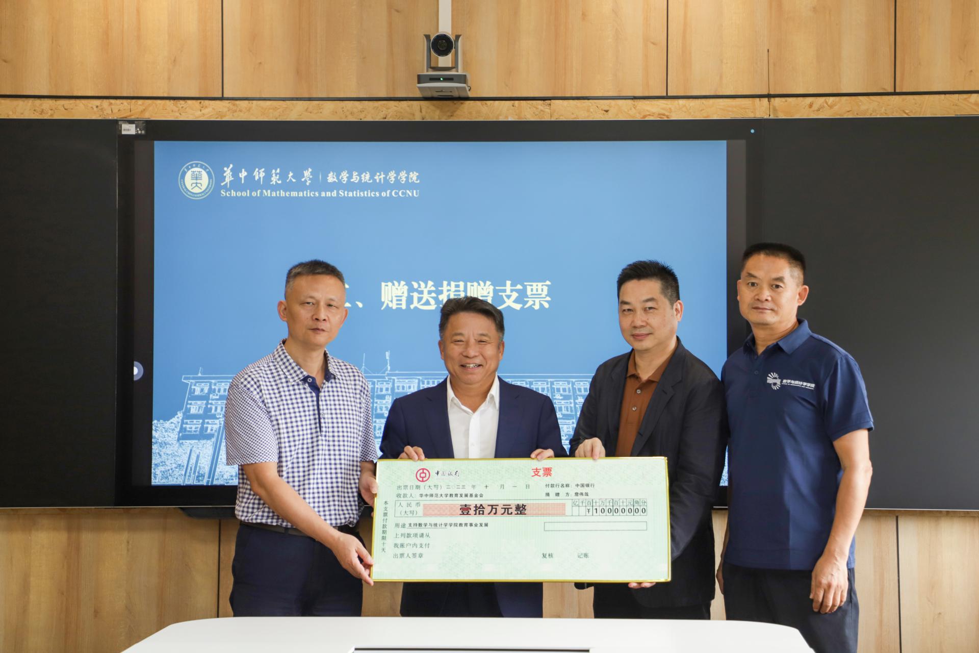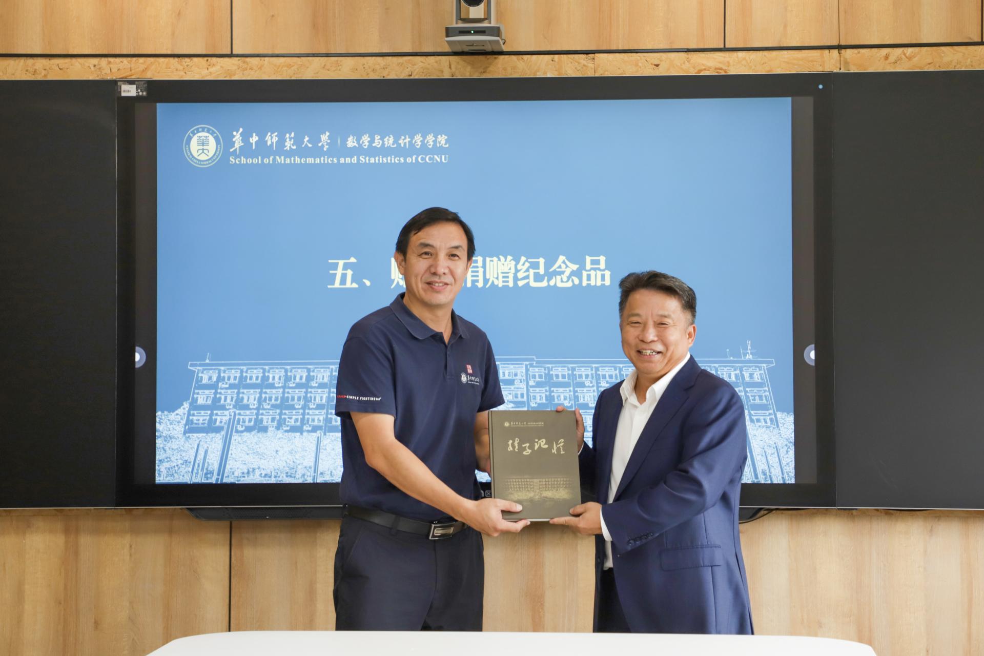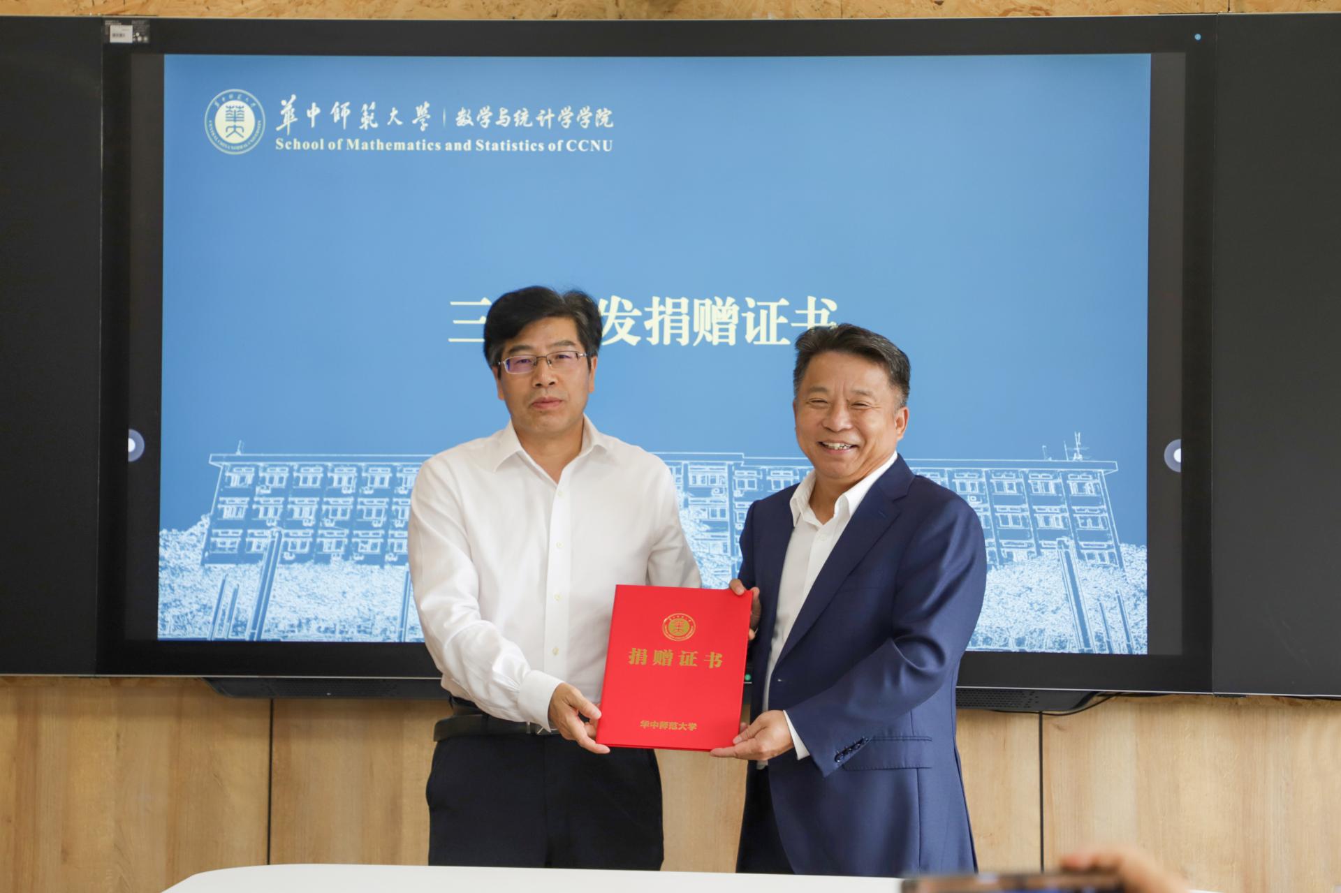 捐赠仪式上,数学系83级校友詹伟哉代表“德沃”奖学金捐资校友向学院捐赠10万元,用于支持学院人才培养。华中师范大学教育发展基金会秘书长郭庆与詹伟哉签署捐赠协议并向詹伟哉赠送学校纪念品,数统学院副院长左国新接收捐赠支票,彭双阶代表学校为詹伟哉颁发捐赠证书、捐赠奖牌。数统学院党委书记刘成竹为詹伟哉赠送学院纪念品《桂子记忆》。