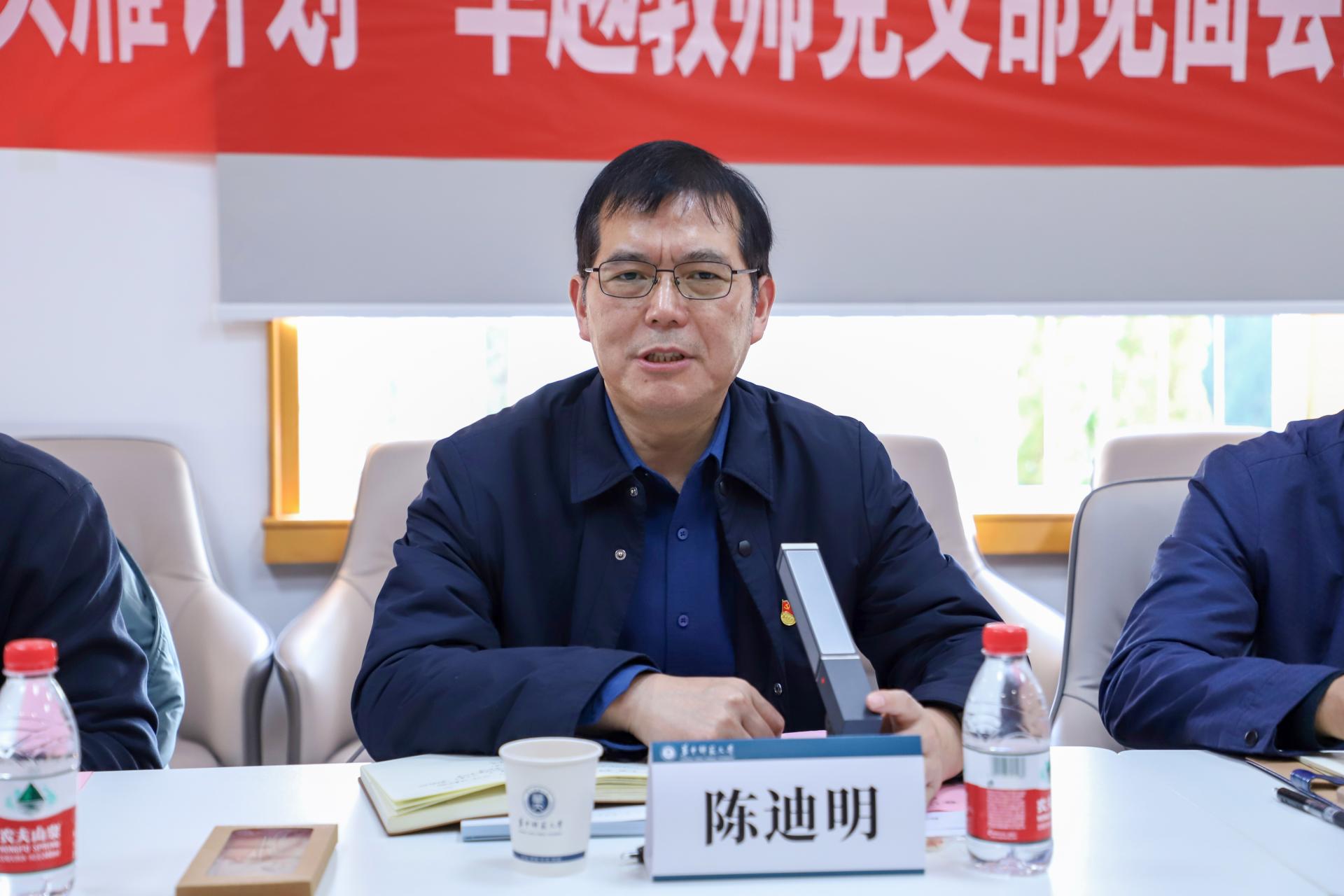(通讯员 向进)12月7日,校领导联系“头雁计划”卓越教师学生党支部见面会暨支部专题学习活动在六号楼323会议室举行,校党委副书记陈迪明出席活动,数学与统计学学院党委书记刘成竹、党委副书记周彦、“头雁计划”卓越教师学生党支部全体党员参加见面会暨专题学习活动。数统学院全体专兼职辅导员列席本次活动。活动由数统学院党委副书记杨可军主持。