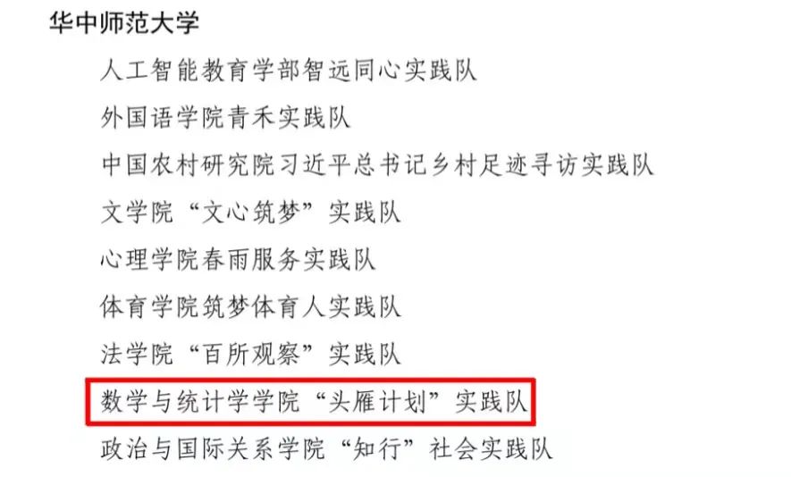 2023年暑假,数学与统计学学院组织703名学生赴湖北黄石、河北正定等地开展聚焦发展成就观察、教育强国支教、社情国情调研、大学生社区实践等主题的暑期社会实践。菁诚实践队和“头雁计划”实践队分别入选2023年“圆梦工程”服务农村未成年人传承优秀传统文化志愿服务队和2023年全国大学生“两弹一星”精神志愿宣讲团。同时,学院组织514名学生参与返家乡实践活动,开展线上课业辅导、防溺水安全防护等志愿活动,累计服务200余名特殊儿童、留守儿童。