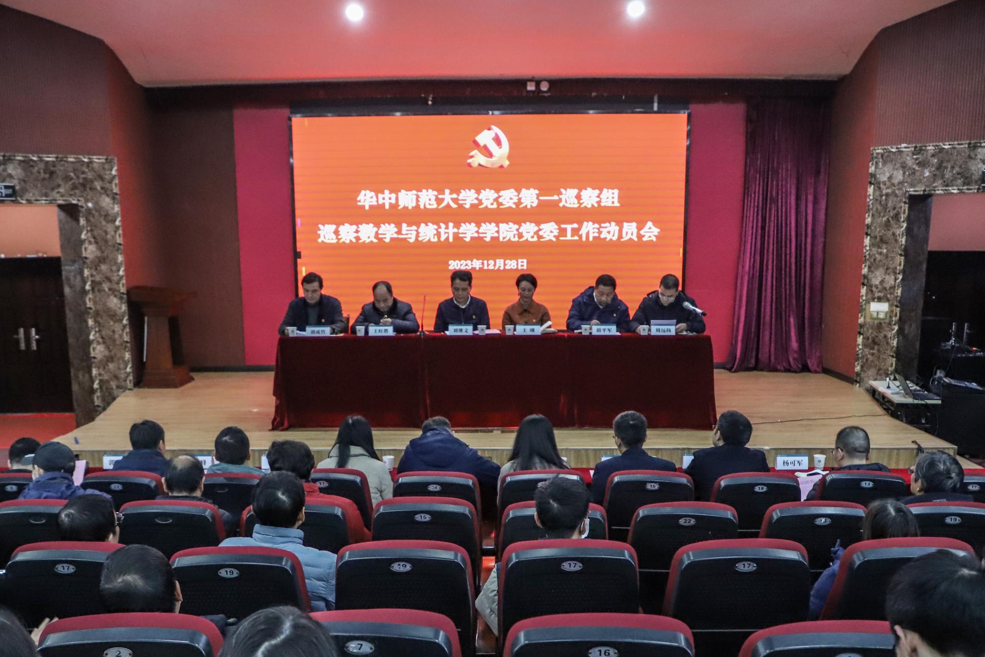 (通讯员 申墁烨)根据学校党委关于巡察工作的统一部署,12月28日下午,校党委第一巡察组巡察数学与统计学学院党委工作动员会在6102报告厅召开。校党委副书记、纪委书记、校党委巡察工作领导小组副组长刘继文,校党委巡察办主任王琍,校党委第一巡察组全体成员,数统学院党政领导班子成员、全体教职工及离退休教职工代表、学生代表参加会议。会议由数统学院院长周远扬主持。